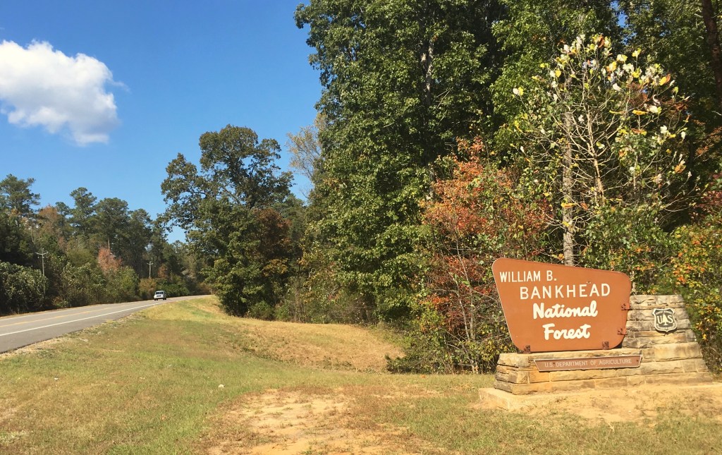 En partant du bike shop au centre de Tuscaloosa, ville universitaire dans l’ouest de l’Alabama où l’on habitait, on a dû traverser un grand pont sur le Black Warrior River pour pouvoir atteindre le petit centre-ville pittoresque de Northport, pour enfin rattraper l’autoroute 43, afin de nous mener au nord vers notre destination : Caney Creek Falls, dans la forêt nationale de William B. Bankhead, 160 km au nord de la ville de Tuscaloosa.